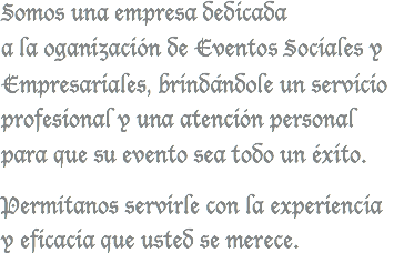 a la oganización de Eventos Sociales y Empresariales, brindándole un servicio profesional y una atención personal